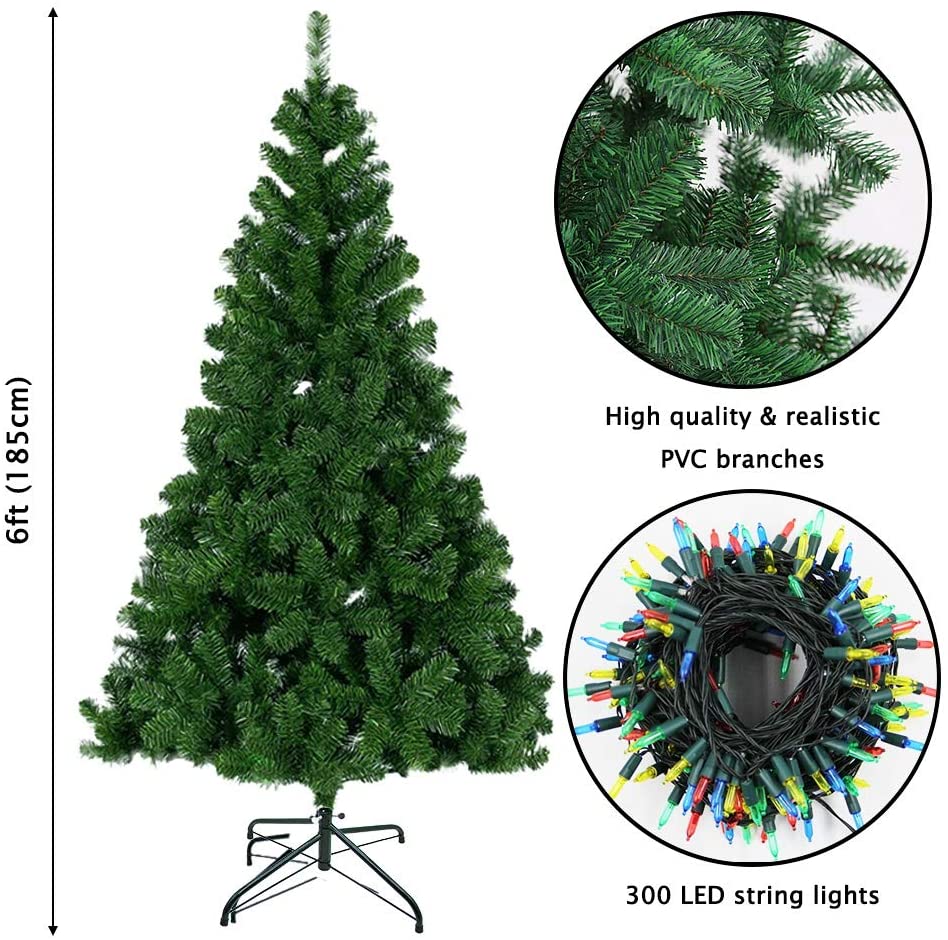 Juegoal 6 foot Artificial Christmas Tree with 300 Multicolor Green Wire String Lights