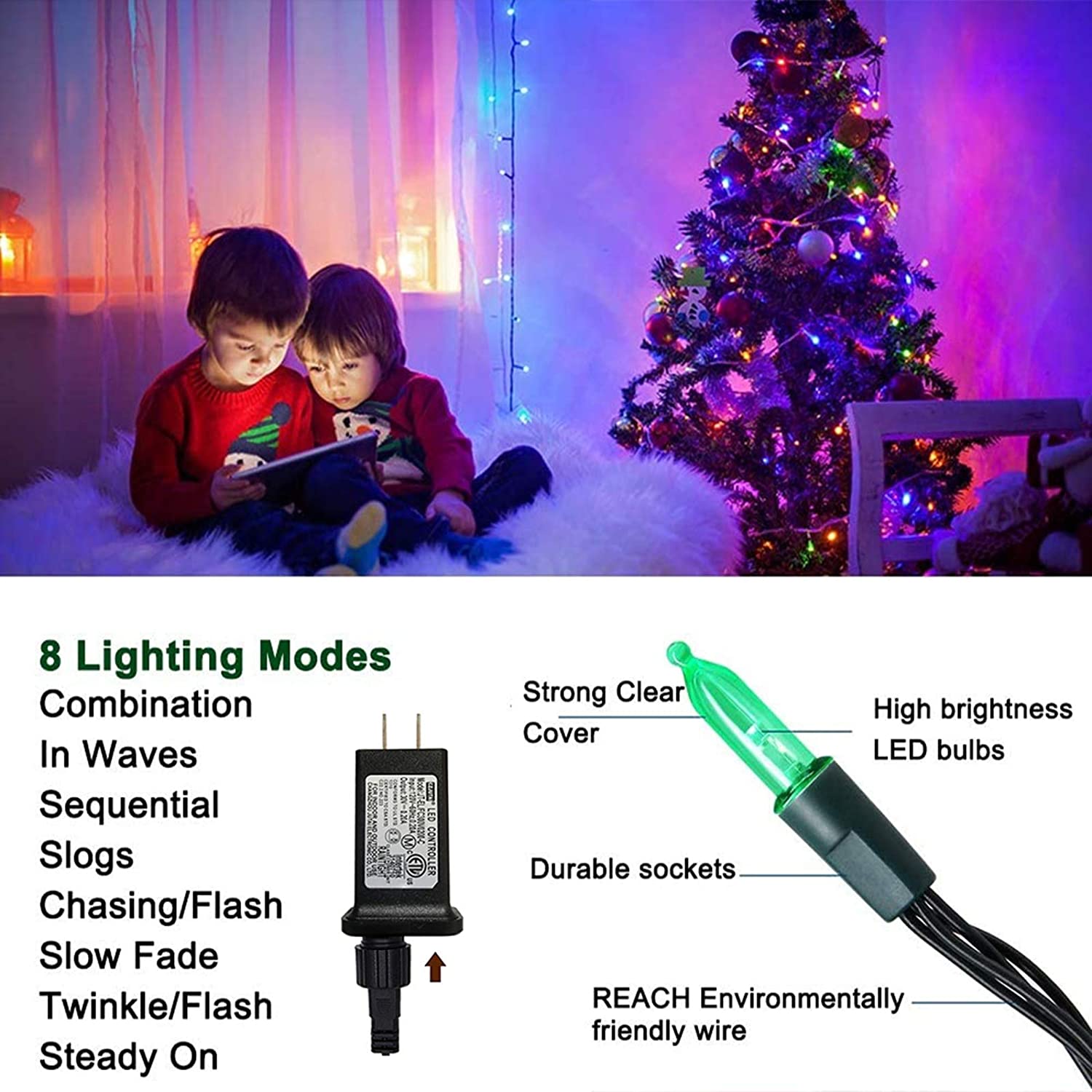 • 8 Lighting Modes of String Lights: Choose from one of the 8 different functions(Combination, In Waves, Sequential, Slogs, Chasing/Flash, Slow Fade, Twinkle/Flash, and Steady On) for your green wire string lights for a more personalized look.