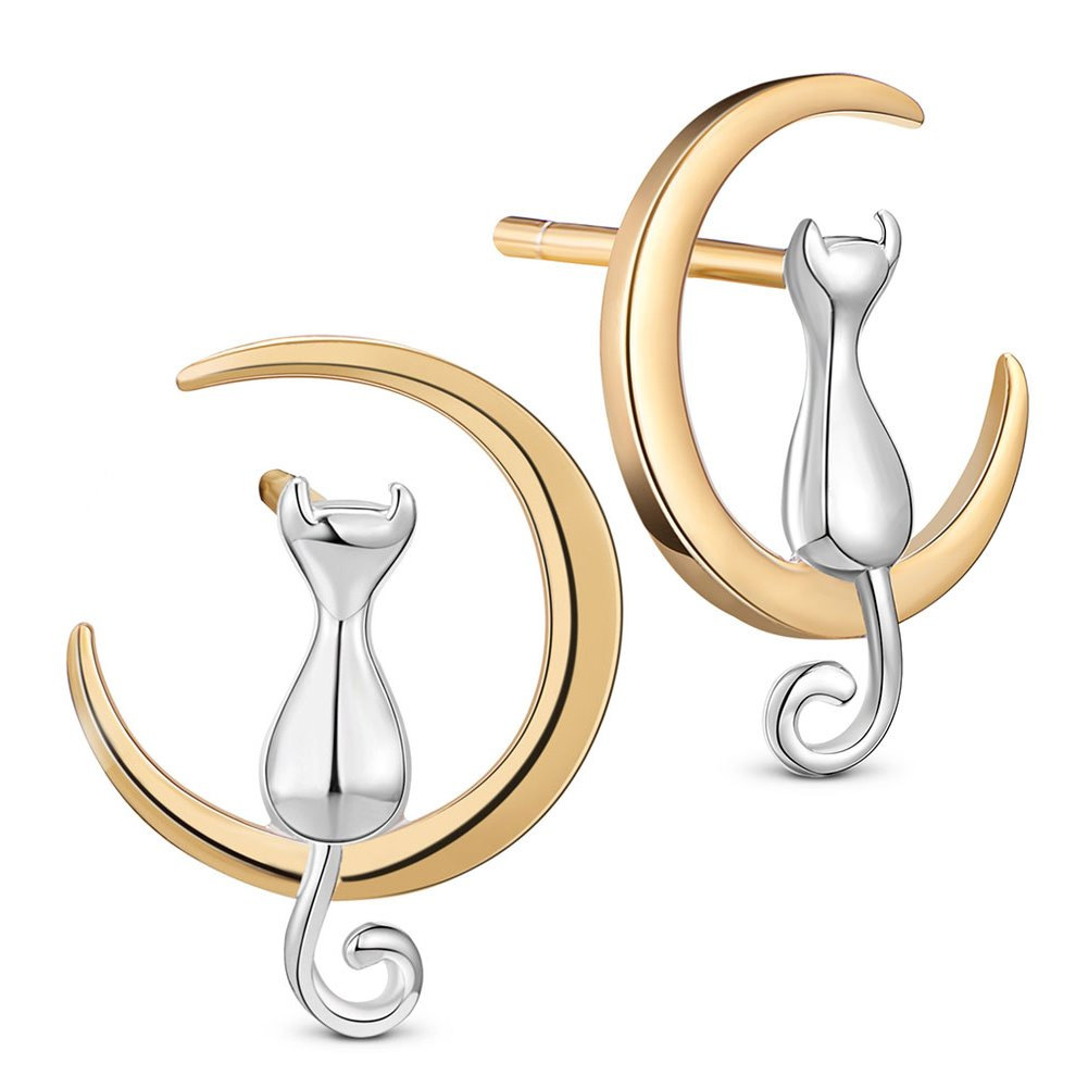 • 925 Sterling Silver Earrings Cat Moon Earrings Cat Lovers Gift for Women