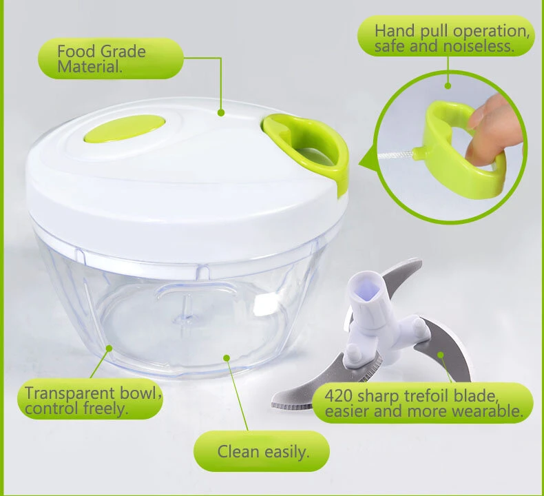 - Pull cord is easy and ideal for chopping food fast, with anti-skid base and transparent body.
