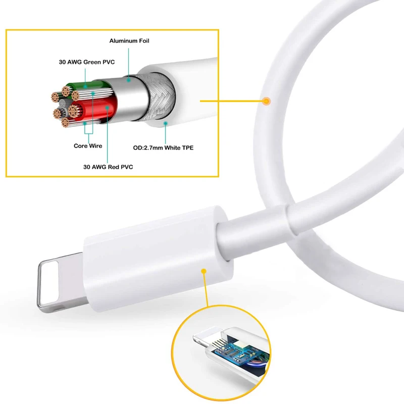 Cable for iphone, 30cm quick charger for models 12, 11, xs, xr, 8, 7, 6s plus, 5 se, apple, ipad pro