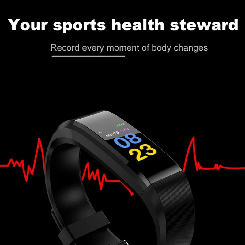 Smart wrist watch 115 fitness monitoring blood pressure sports watch, heart rate monitor wristband