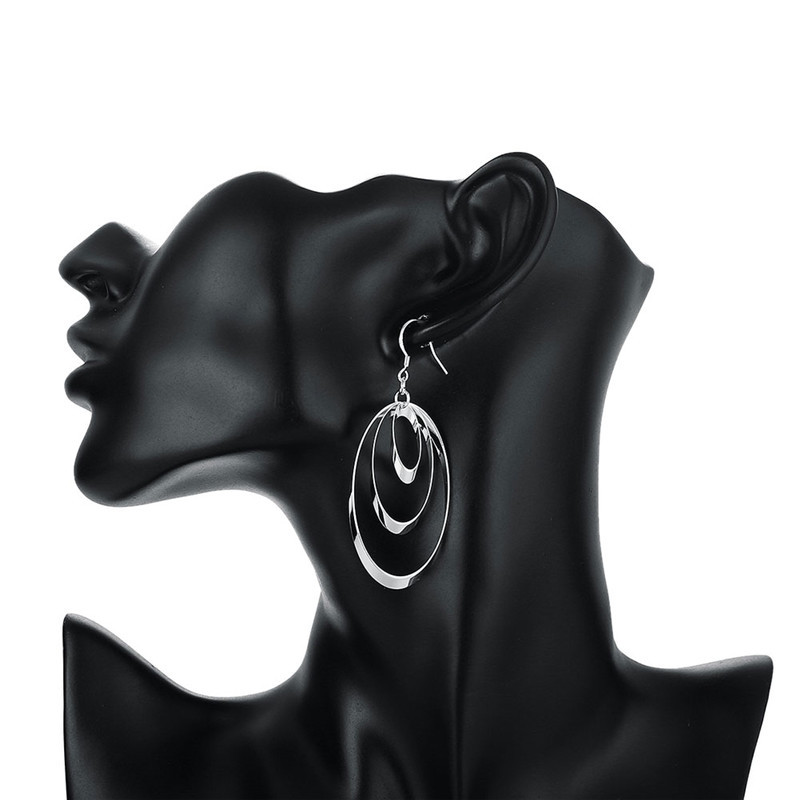925 Sterling Silver Three Circle Long Tassel Drop Earrings For Women Engagement Wedding Jewelry Gift