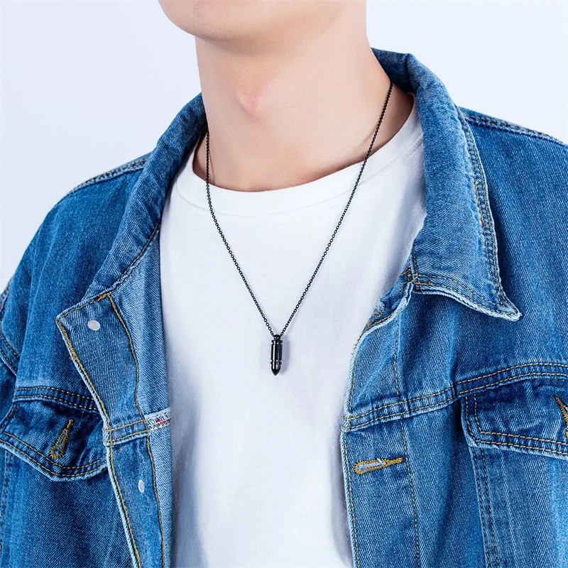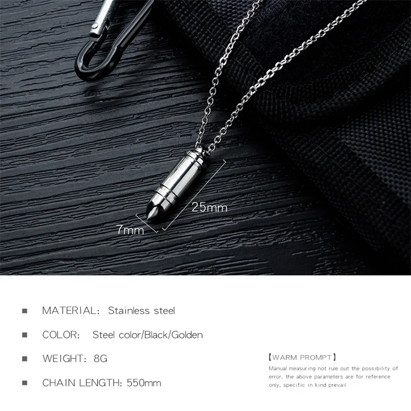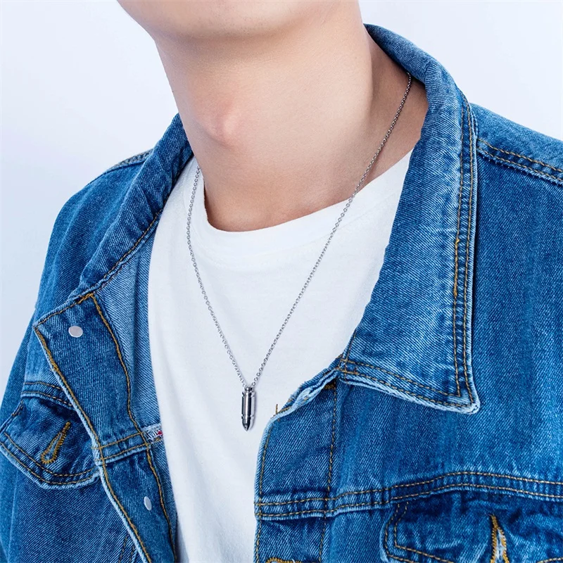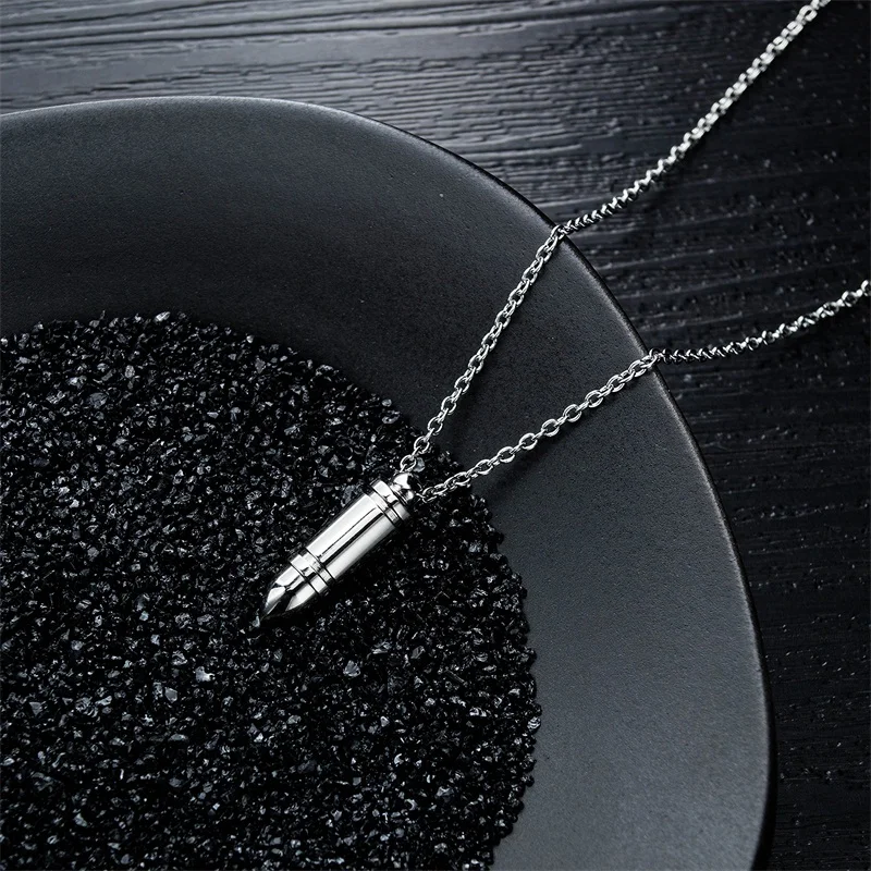 custom punk bullet pendant for men stainless steel engraved necklaces for male unique gift dropshipping 3 colors