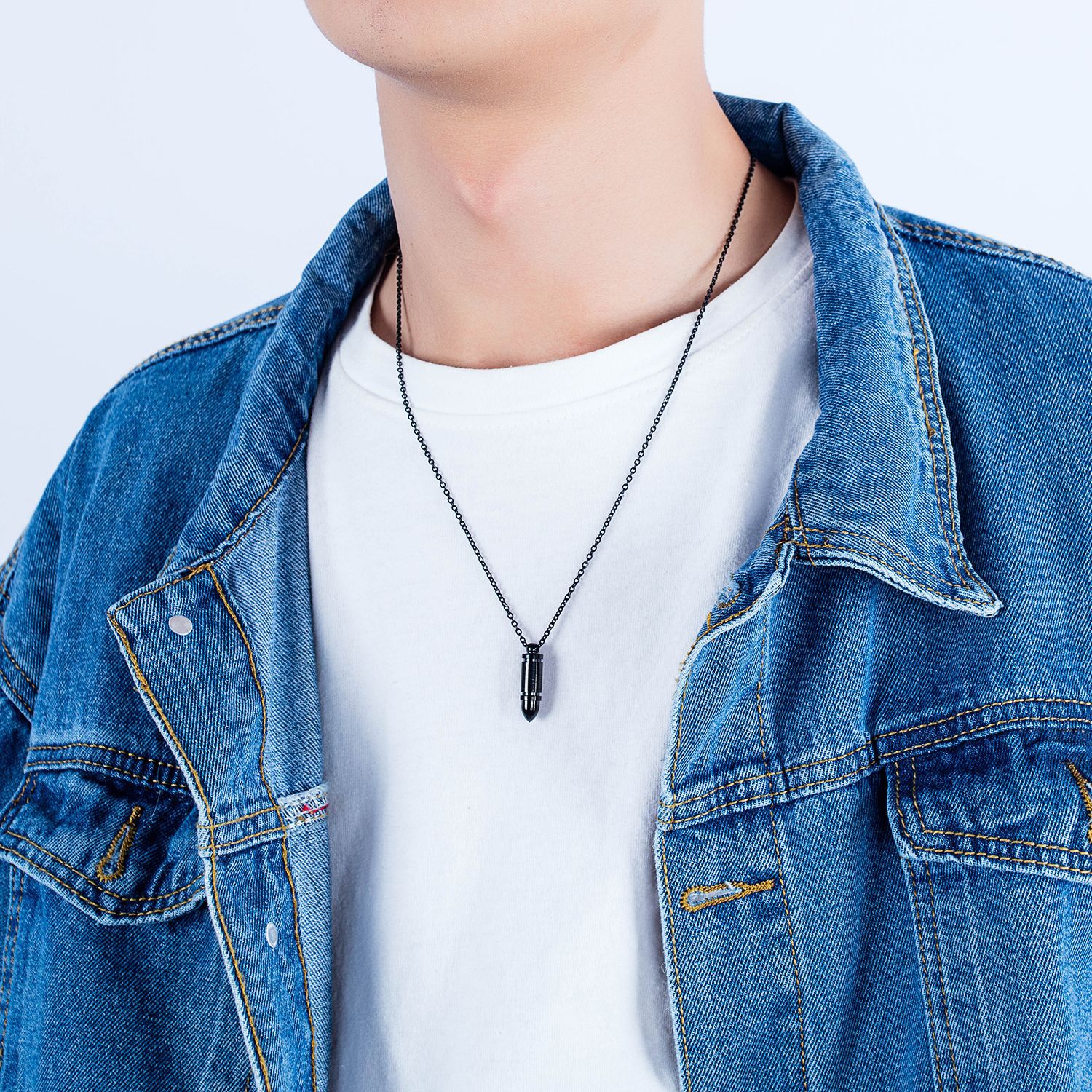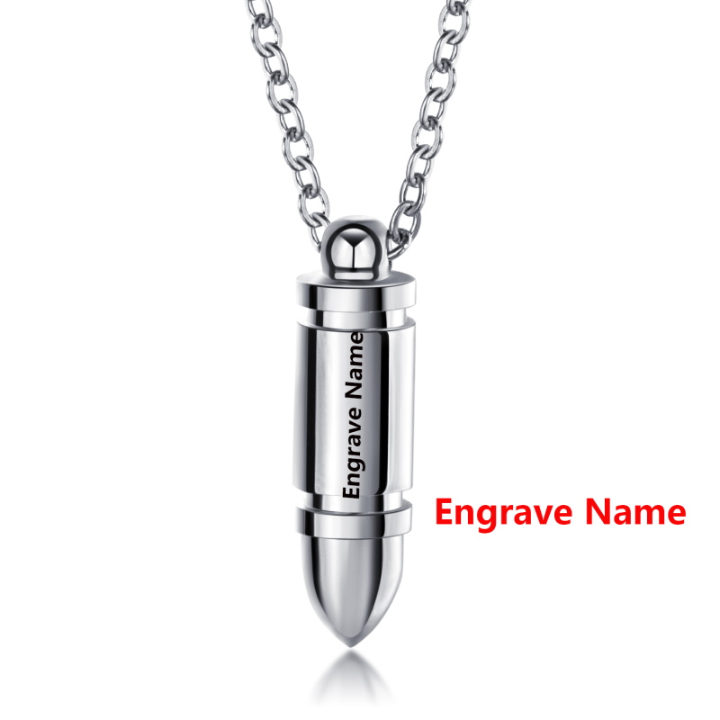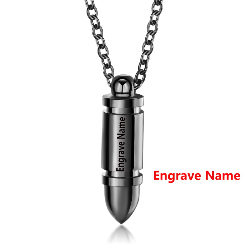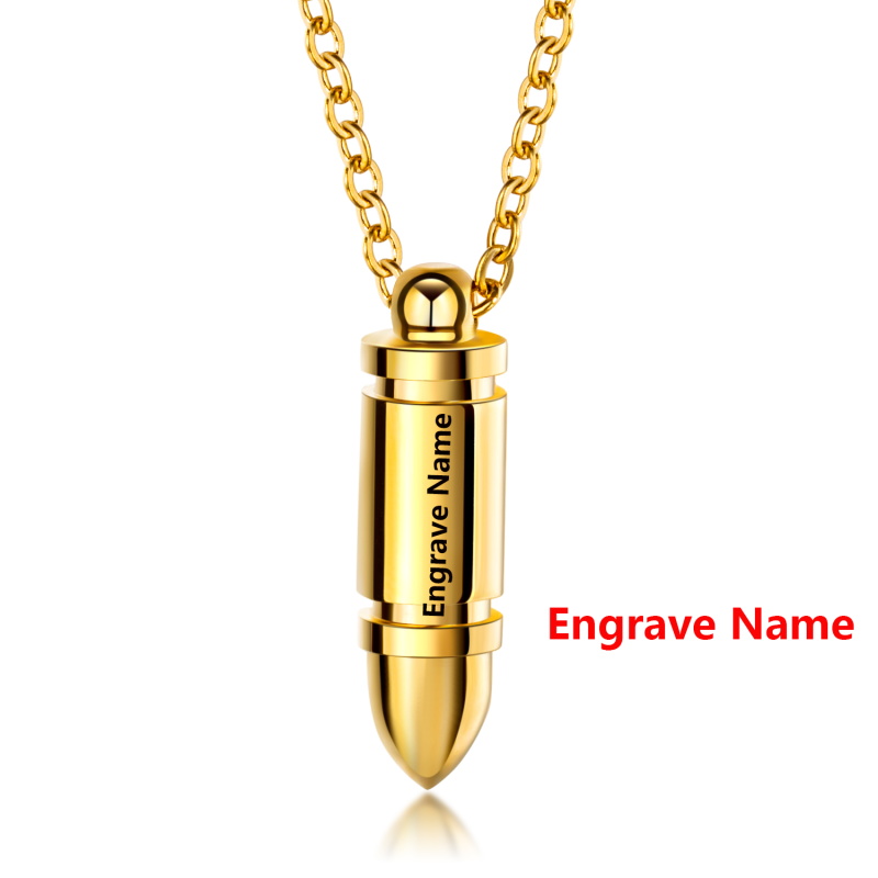 Personalized punk bullet pendant for men, stainless steel necklace with engraved name, exclusive men's gift, 3 colors