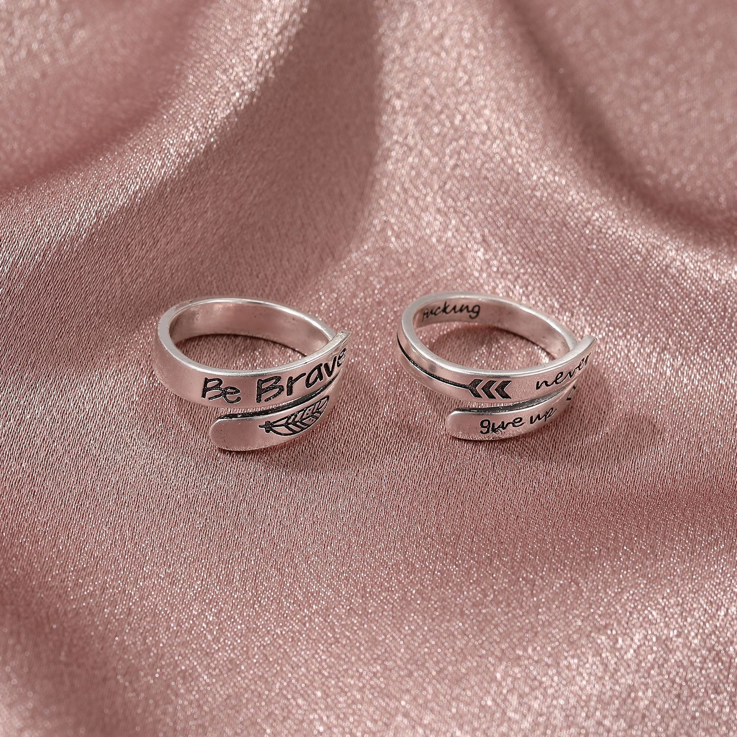 Retro open arrow feather ring, stylish and simple ins steel ring girl