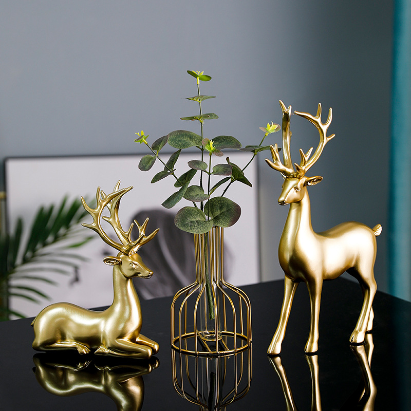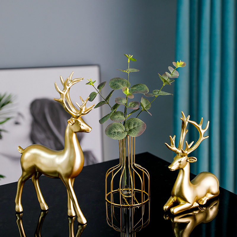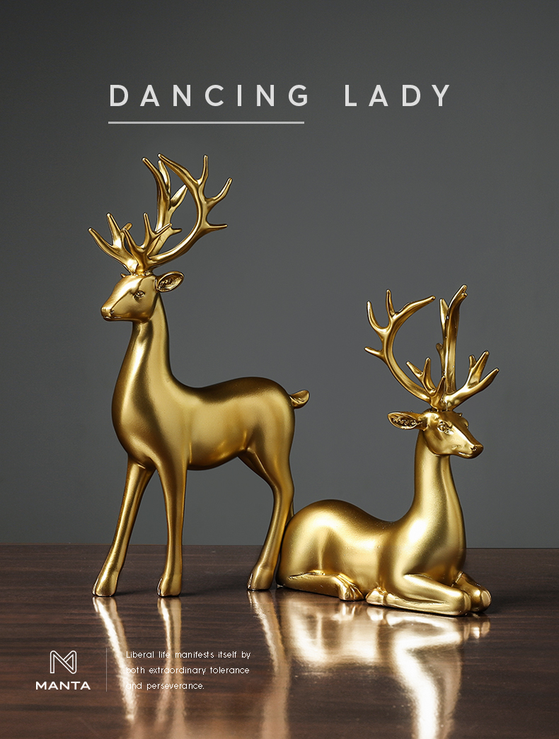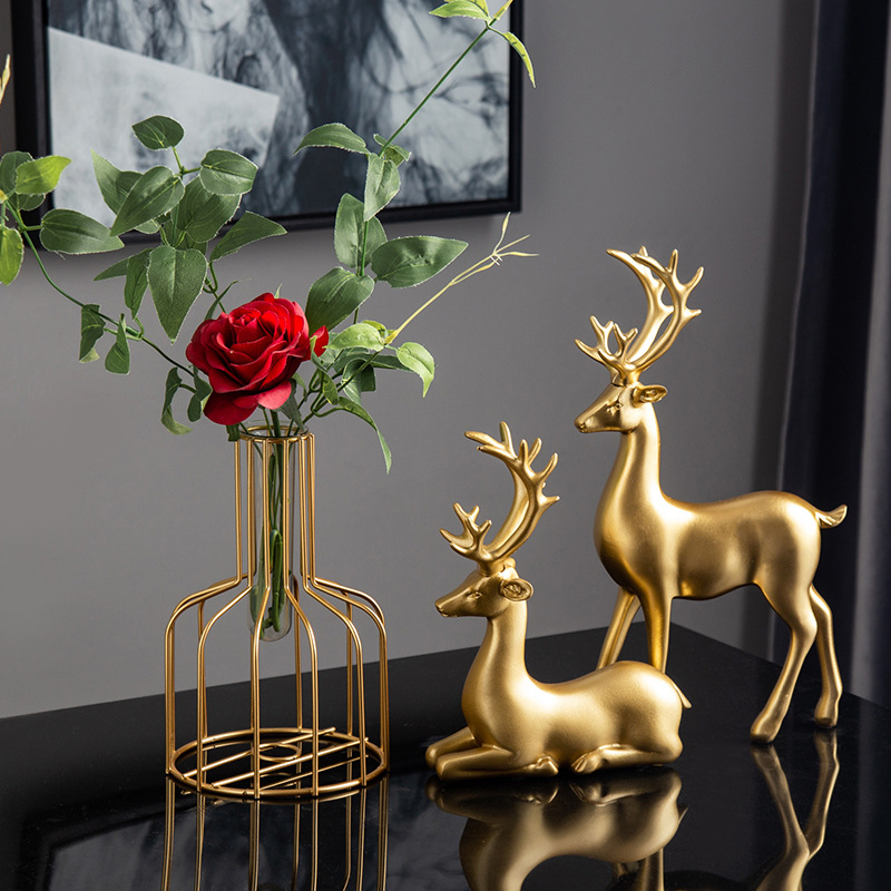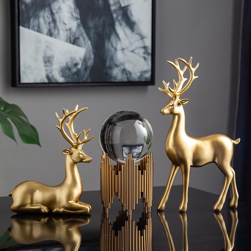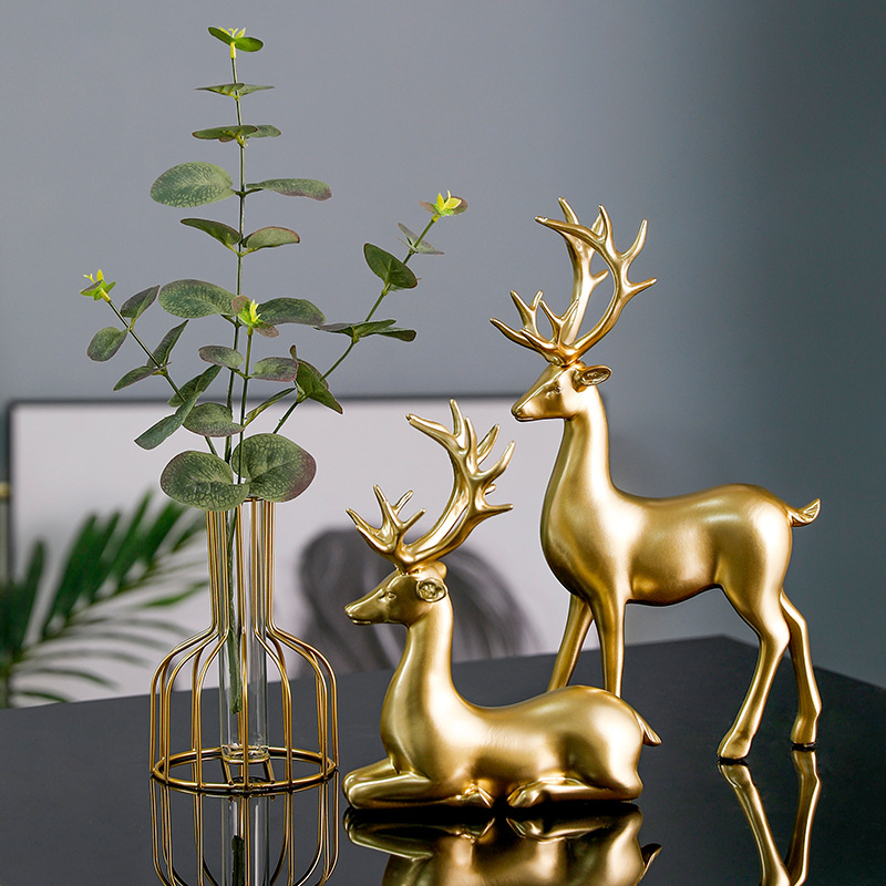 Simple and creative golden couple deer wine cabinet decoration modern home living room TV cabinet desktop decoration decoration