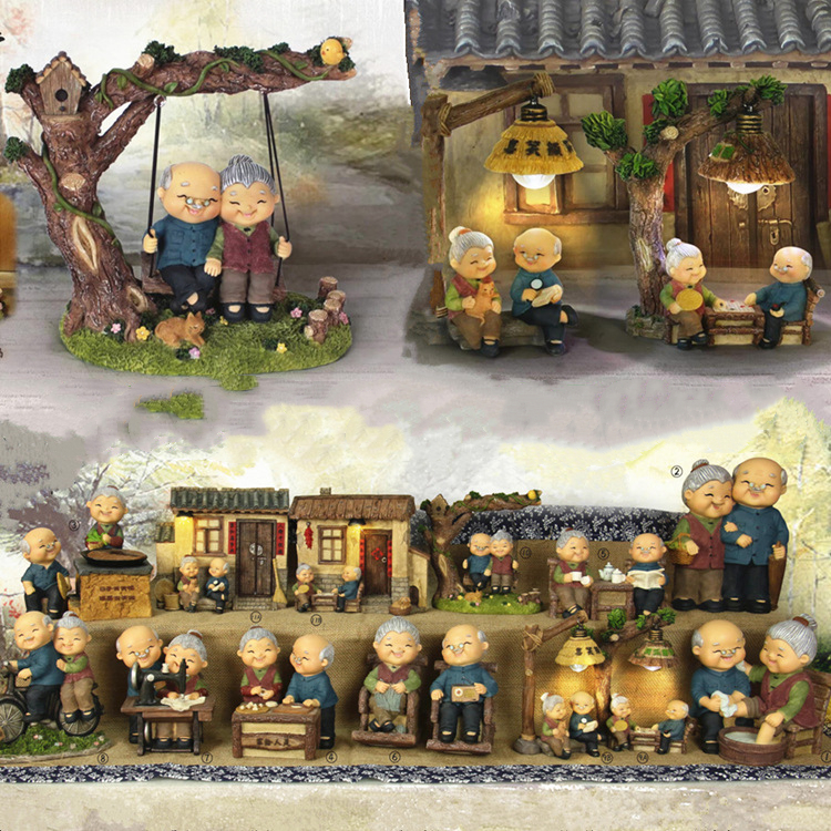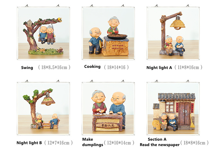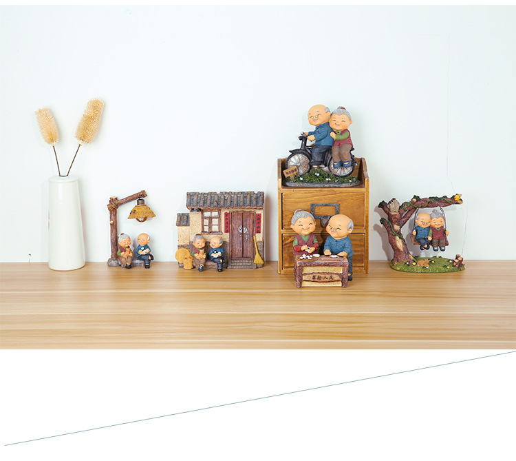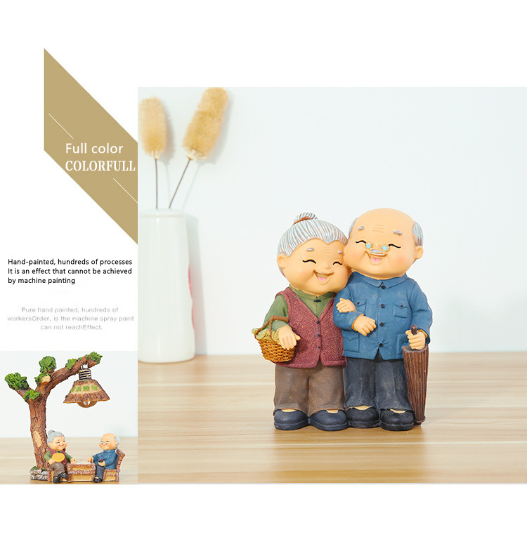 Creative old man and old lady decorations stay together to accompany wedding anniversary Christmas birthday gifts home decoration for the elderly elders gifts resin crafts ornaments
