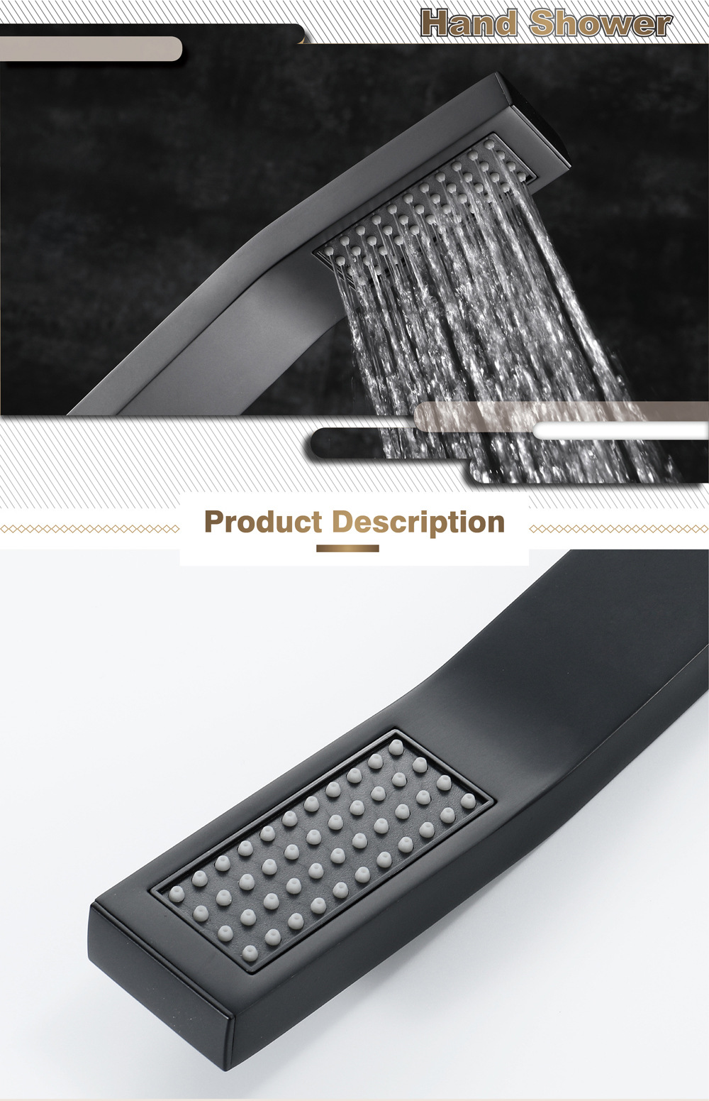 Bathroom black curved hand shower set square curved shower nozzle portable shower head bathroom supplies